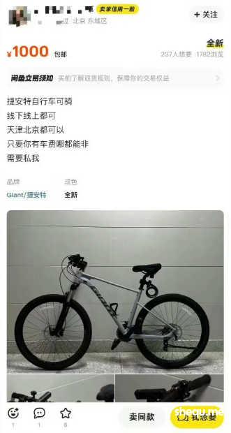 有报道说,一个重庆的男骑友想买一辆二手捷安特ATX660,在闲鱼上看到恰好同城有女骑友在出,于是开展了一场类似的对话。