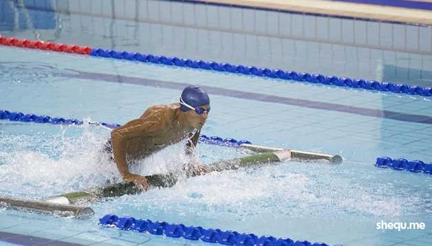 障碍游泳是军事五项的其中一项,设障碍物,障碍游泳也叫实用游泳,它与一般的游泳比赛相比,其特点就在于在游进中要越过设在水面上的各种障碍物,要求运动员不但能游,还要能爬、能钻、能跳、能攀。