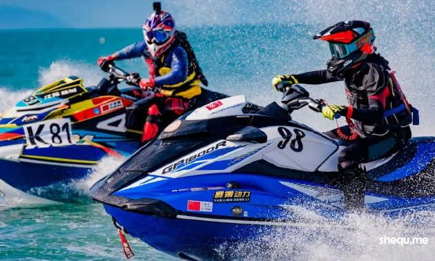 驾驶摩托艇先到达终点者获胜,因机械动力并且观赏性差被取消